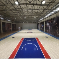 雙層板上下龍骨雙彈結構高吸震性和連續回彈性的固定懸浮式的運動木地板系統,適用于國內,國際比賽。